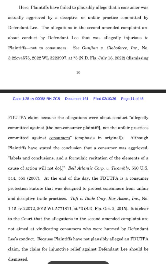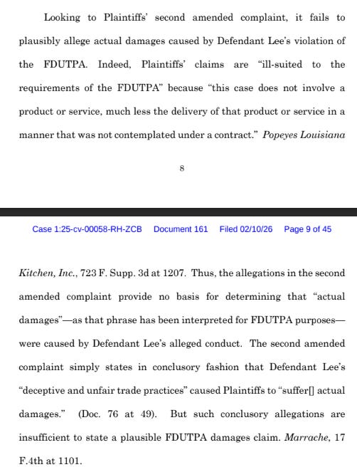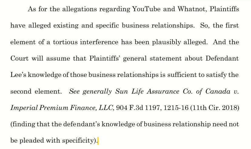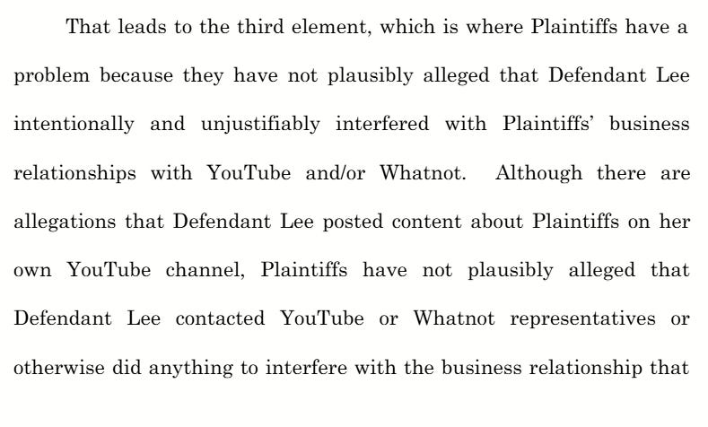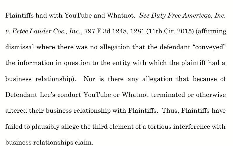 At this stage, the judge assumes allegations are true, so being unable to allege all the elements necessary to meet each tort means that Shochet either didn’t understand what was necessary, or worse, he did and didn’t care that he was filing a frivolous lawsuit.