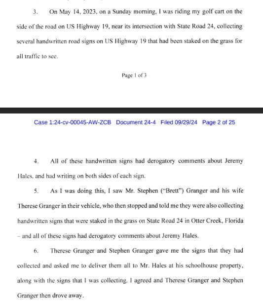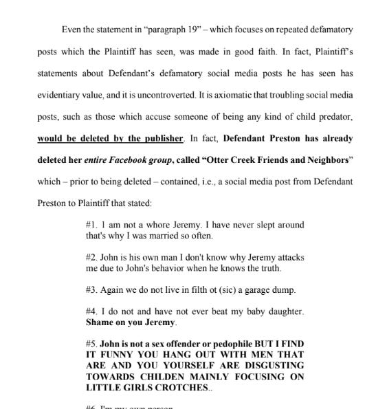 Hales sued Cook and Preston primarily for some incendiary signs posted in several places in Otter Creek; the signs falsely claimed that he was a child predator. There is dispute over who made the signs {my bet his Hales himself}.
