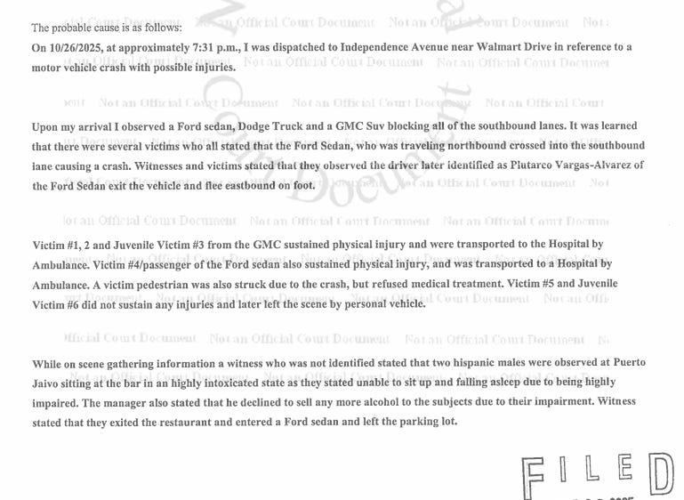 On October 26, 2025, Vargas-Alvarez was involved in a multiple vehicle crash and allegedly left the scene, according to a probable cause affidavit.