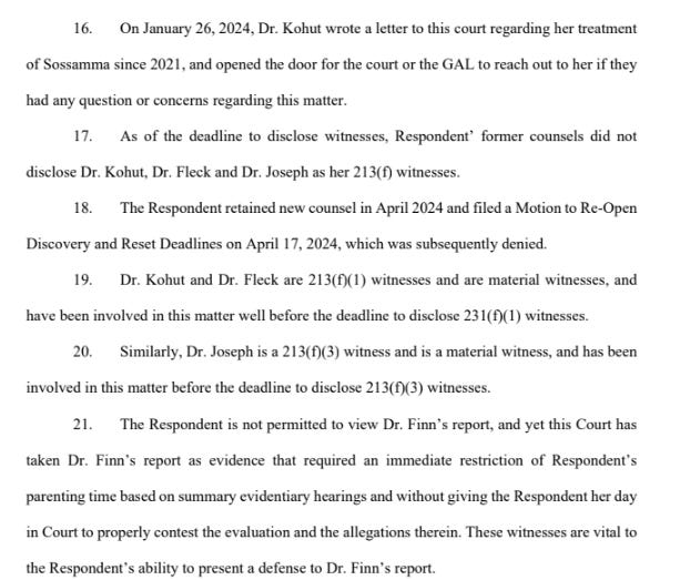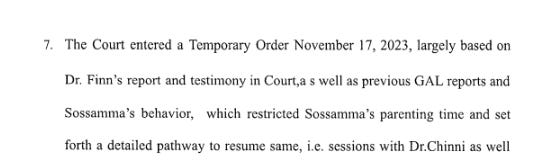As you can see from the motion above, Sossamma had not even seen the report when Judge Bruno decided to hold an emergency hearing on November 17, 2023.