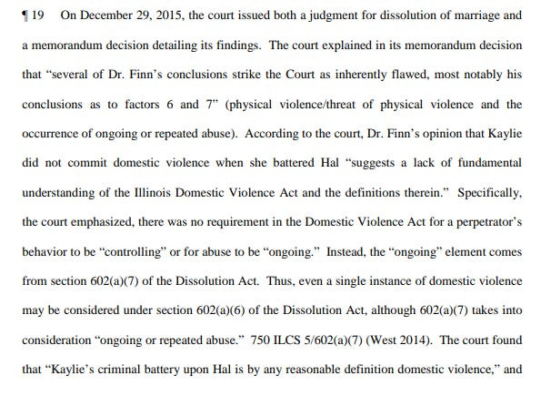 One thing that Judge Bruno will allow is to cross-examine Dr. Finn with another evaluation. Dr. Finn is a quack, so this should show his pattern of quackery. Here’s what an Illinois Appellate Court found about him.