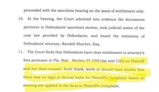 Also, the court found the action under 540.08 Knowingly without basis in fact or law (aka frivolous) in the Dec 19th Order. I’m attaching a screenshot with highlights just for you.