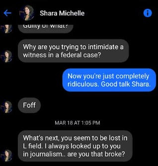 Shara “the deflector” Wolf claimed I was intimidating her, a federal witness.