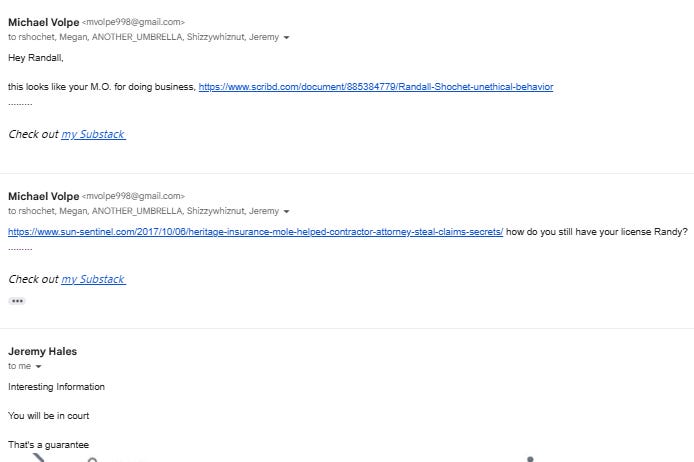 That email was sent on July 10, 2025, and it was in response to an email I sent him, his attorney Randall Shochet, and others about a civil lawsuit alleging that Shochet was using unethical means to poach clients.