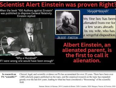 Proponents of parental alienation have milked his words to full effect. Associating Einstein with this pseudoscience is a great way to legitimize it.